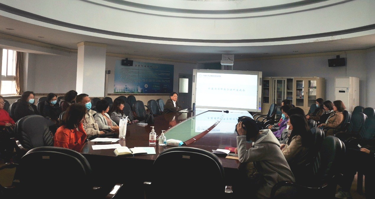 潘海英院长做总结发言,她指出新时代为大学外语发展提供了新的机遇,也对非通用语外语人才的培养提出了新的要求,各位老师要进一步内化课程建设,做好课程设计及课堂教学设计,切实提升外语教学质量。