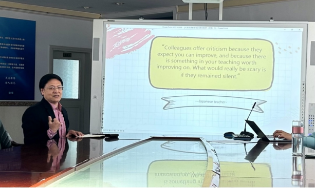 分享最后,王守宏院长肯定了大学英语C级班教学团队取得的成绩,并对这次备课活动给予高度评价,同时提出了宝贵建议。他强调源浚者流长,根深者叶茂,集体备课是集思广益,是思维的碰撞,是所有人的共同进步,建议教师通过践行学校的听课制度,互听互评课,携手共进,教学相长。