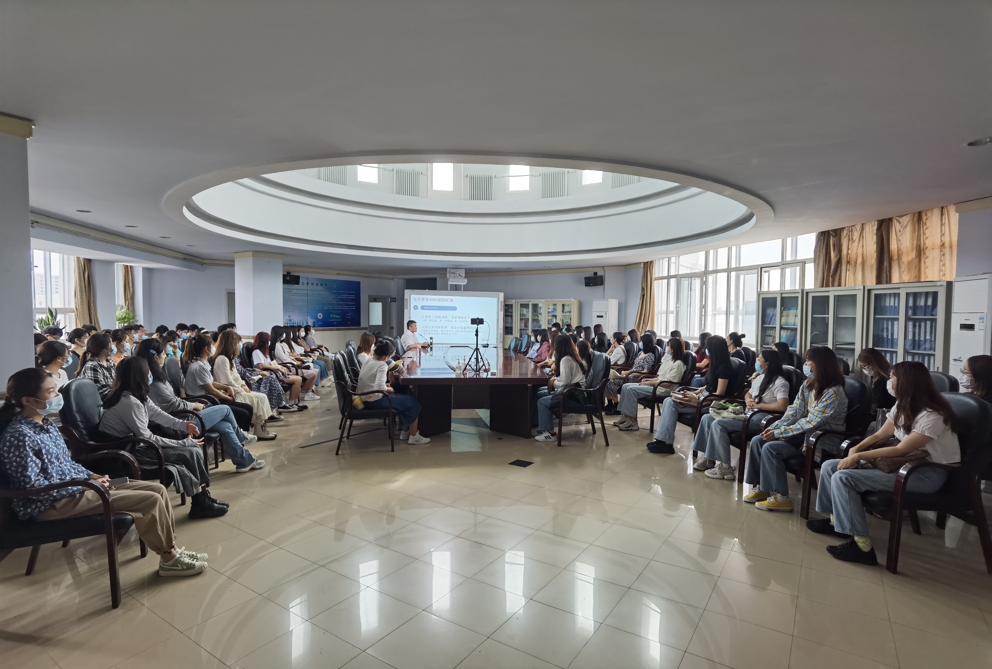为引导研究生坚定理想信念,树立正确的学业态度和专业思想,2022914日下午,公共外语教育学院组织了2022级研究生入学教育——思想政治教育讲座。本次讲座由学院党委书记贺强主讲,党委副书记徐杰主持。学院辅导员曾媛以及全体2022级研究生新生参加讲座。
