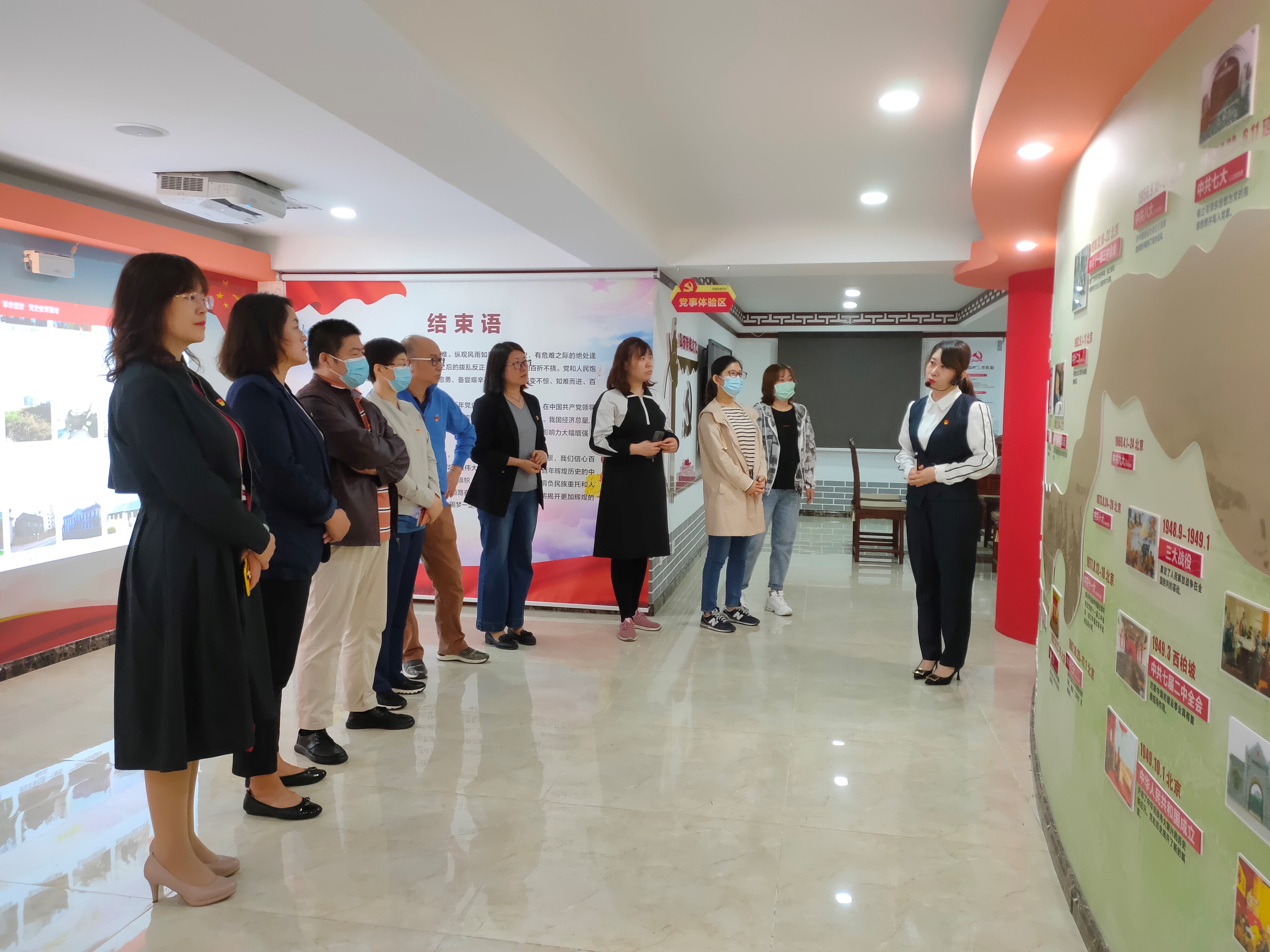为认真领悟习近平总书记在党史学习教育动员大会上的重要讲话精神,做到学史明理、学史增信、学史崇德、学史力行,学党史、悟思想、办实事、开新局,以昂扬姿态奋力开启全面建设社会主义现代化国家新征程,以优异成绩迎接建党一百周年,多宝真人网站大学英语教工第七支部于2021年6月2日下午来到支部共建单位——“文庙社区5S党史学习教育基地”进行党史学习实践活动。桃源街道党工委副书记孙超、党办主任苏丹、文庙社区党委副书记赵南等文庙社区领导热情接待,并全程陪同指导实践活动。