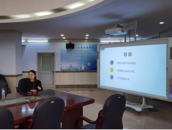 随后徐志卿老师分享了自己如何根据教材及教学实际设计实施视频展示活动。为有效提高课堂效果,她精心准备视频题目,充分考虑学生需求,提供丰富的脚手架资源,指导学生制作视频,并挑选优秀作品进行课堂展示。通过活动兼顾了语言输入和输出,学生不仅学习到了知识,还收获了成就感。徐老师详细阐述活动设计的初衷和效果,并现场展示了学生的优秀作品。