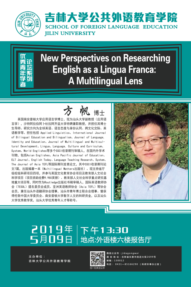 报告题目:New Perspectives on Researching English as a Lingua Franca: