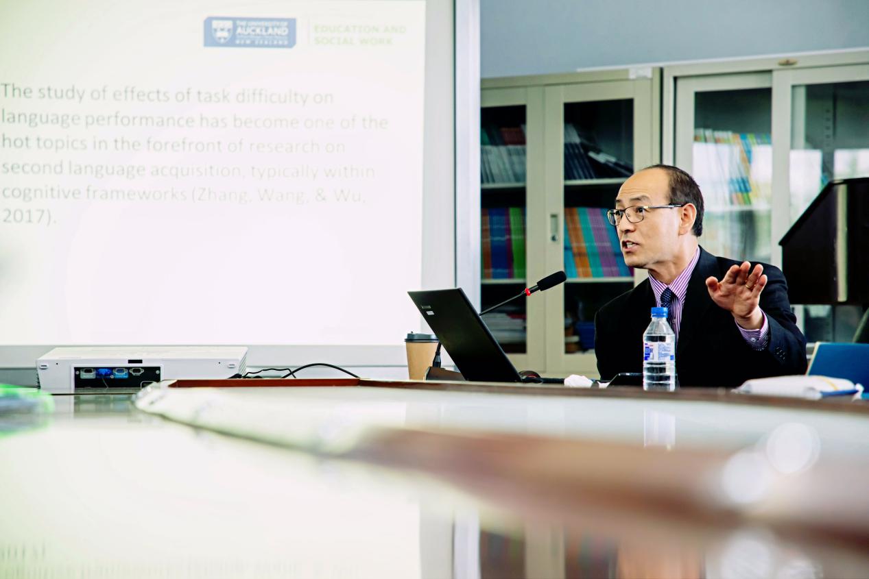 2019528日,应公共外语教育学院的邀请新西兰奥克兰大学教育学部副部长、应用语言学教授、博士生导师,原吉林大学“长白山讲座教授”、山西省“百人计划”特聘专家张军教授在外语楼报告厅做了题为“Four Decades of Research into Task Complexity in Language Acquisition: A Bibliometric Analysis Using CiteSpace的学术报告。讲座由公共外语教育学院潘海英院长主持,来自吉林大学、沈阳师范大学、哈尔滨师范大学等百余名师生共同参加。