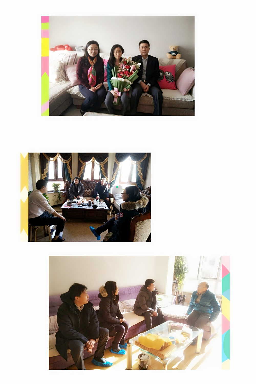 随后,学院领导前往退休教职工代表家中,为离退休教工送去新春祝福。班子成员与他们拉起家常,关切地询问他们的退休生活和身体状况,向离退休教职工汇报了近年来学院发展取得的成绩及规划,衷心地感谢他们对学院发展的关心与支持,希望大家一如既往地关注学院发展。学院领导高度重视离退休工作,对于未能一一看望的近年来离退休的教职工均精心准备了春节贺卡,为大家送去春节祝福。