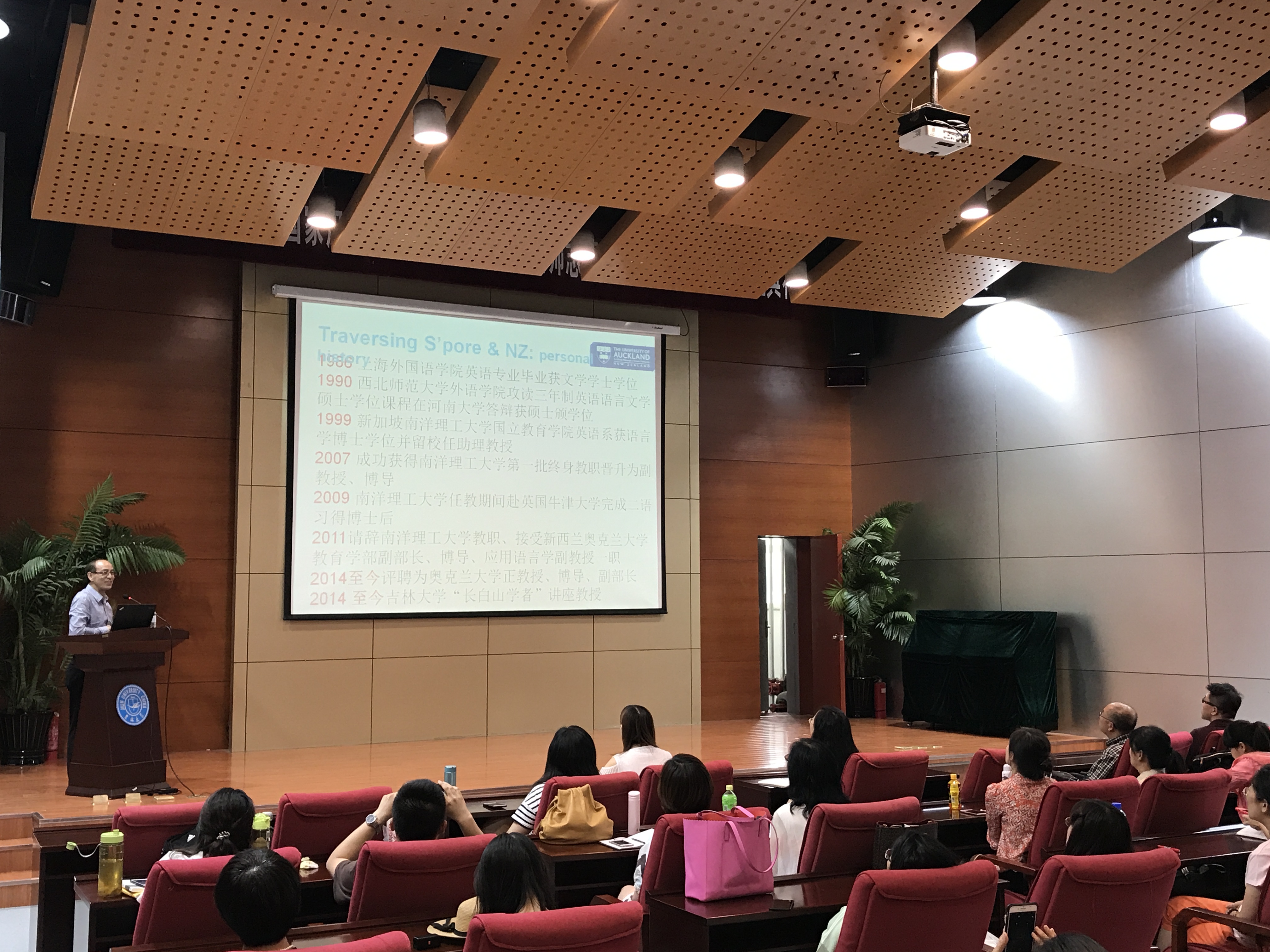 张军教授(Prof. Lawrence Jun Zhang)在报告中介绍了新加坡和新西兰的基本国情,对比了两国的生活方式和多元文化,深入探讨了新加坡和新西兰的教育体制和国家语言教育政策,并就两国使用双语和双文的教学方法等与在座师生进行了交流。报告结束后,张军教授回答了教师们的提问。报告气氛热烈,师生积极参与。