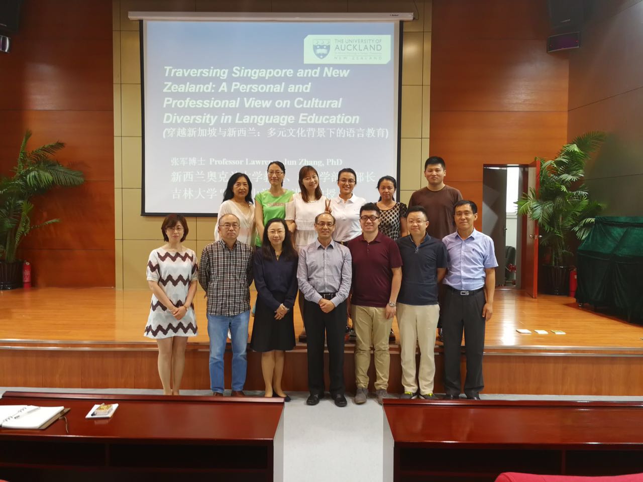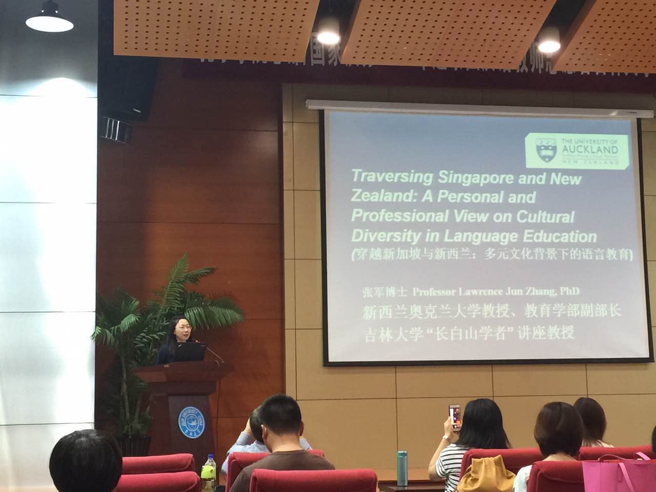 2017年6月23日,由多宝真人网站、吉林大学高校外语教育研究中心和吉林大学学生就业创业指导与服务中心共同举办的吉林大学“国际组织人才培养与推送”系列讲座第三讲,暨多宝真人网站“国际组织 中国参与”系列讲座在国际大讲堂顺利举行。本次讲座邀请新西兰奥克兰大学教育学院副院长、吉林大学“长白山”讲座教授张军教授为参会的老师与同学们做了题为“Traversing Singapore and New Zealand: A Personal and Professional View on Cultural Diversity in Language Education”(穿越新加坡与新西兰:多元文化背景下的语言教育)的主题讲座。学院院长潘海英教授、副院长王守宏教授和我校师生共同参加了本次讲座,讲座由潘海英教授主持。