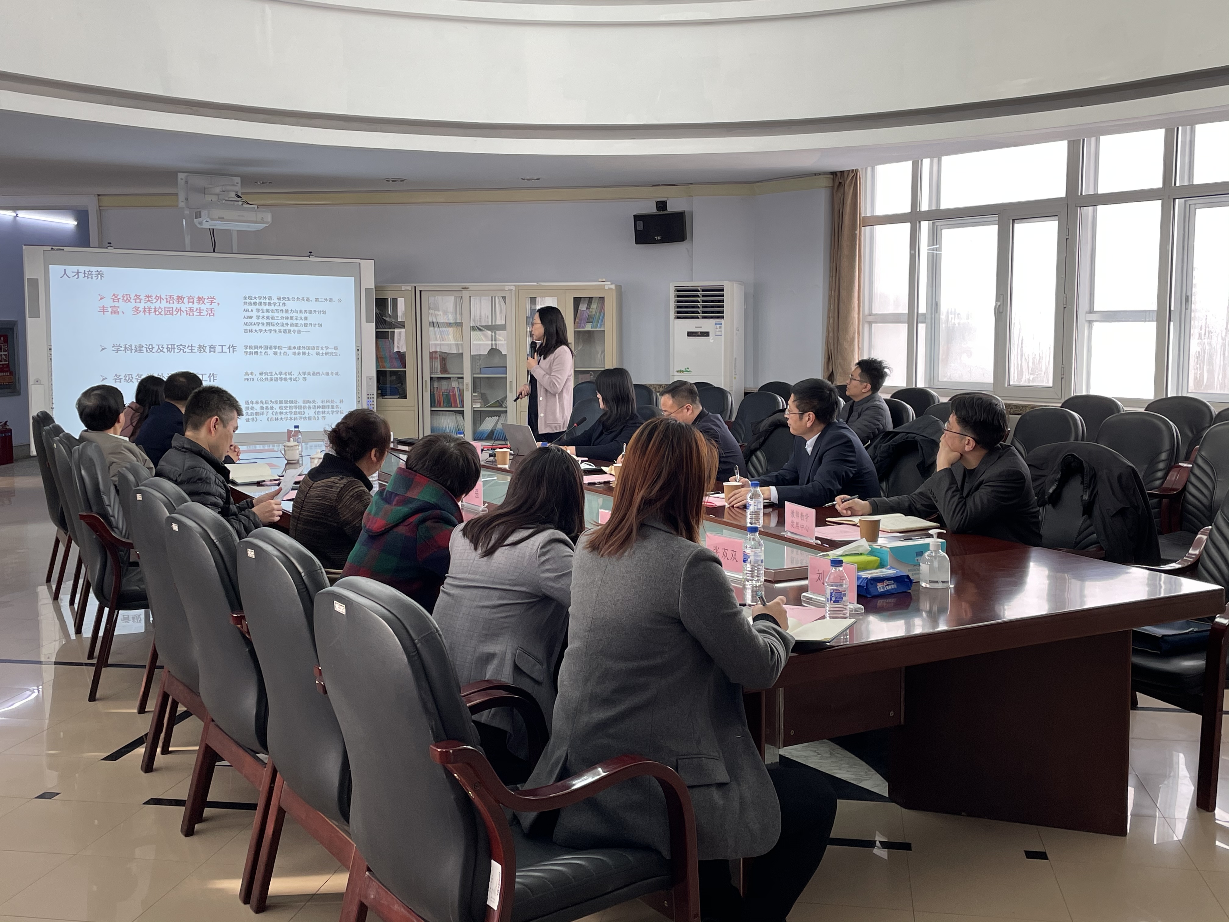 11月11日上午9时,副校长赵宏伟、教师教学发展中心主任魏晓辉,白求恩医学部副学部长兼医学教育办公室主任、医学教育研究与教师发展中心主任金祥雷,国际合作与交流处副处长李筠一行四人到公共外语教育学院进行调研。