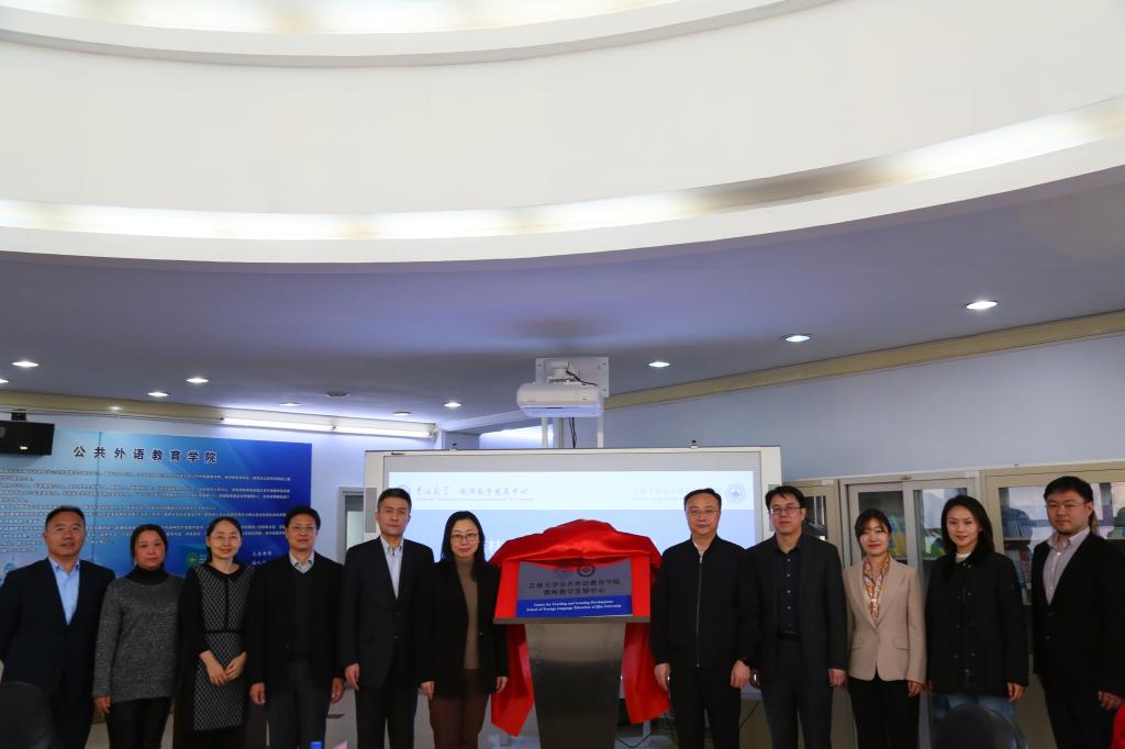 随后,吉林大学副校长赵宏伟、学校教师教学发展中心主任魏晓辉、公共外语教育学院院长潘海英、学院党委书记贺强共同为中心揭牌。公共外语教育学院教师教学发展中心主任张凤娟教授就中心成立与工作情况进行了汇报。
