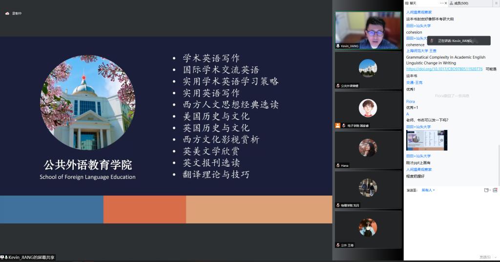 2022年4月20日晚6:30,由吉林大学党委研究生工作部主办,公共外语教育学院协办的爱“语”你我,同“疫”课堂——吉林大学研究生线上外语系列课程第一课开讲。第一课的主题为“学术英语论文写作:谋篇和语言”,由公共外语教育学院副院长、匡亚明特聘教授姜峰老师主讲,校内外研究生踊跃参与。