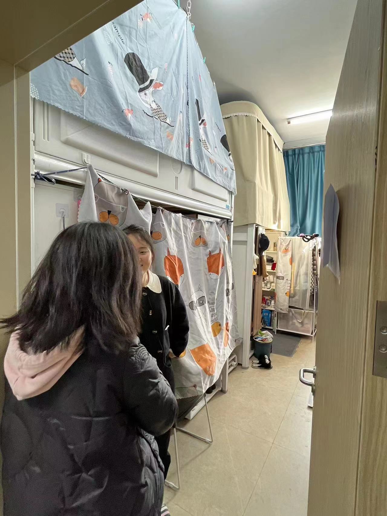 走访过程中,曾老师详细地询问了学生住宿、就餐等方面的情况,及时了解同学们学习生活状态,以更好地解决同学们各方面的需求;对于同学们在学习、生活、工作上遇到的困难,曾老师耐心地答疑解惑,细致入微地关心;叮嘱同学们学会照顾自己、提高安全意识,遇到问题及时与师长进行沟通和交流,强调同学之间相互体谅、相互关心。同学们宿舍整洁明亮,同学们精神面貌饱满、朝气蓬勃,走访过程中师生交谈甚欢。