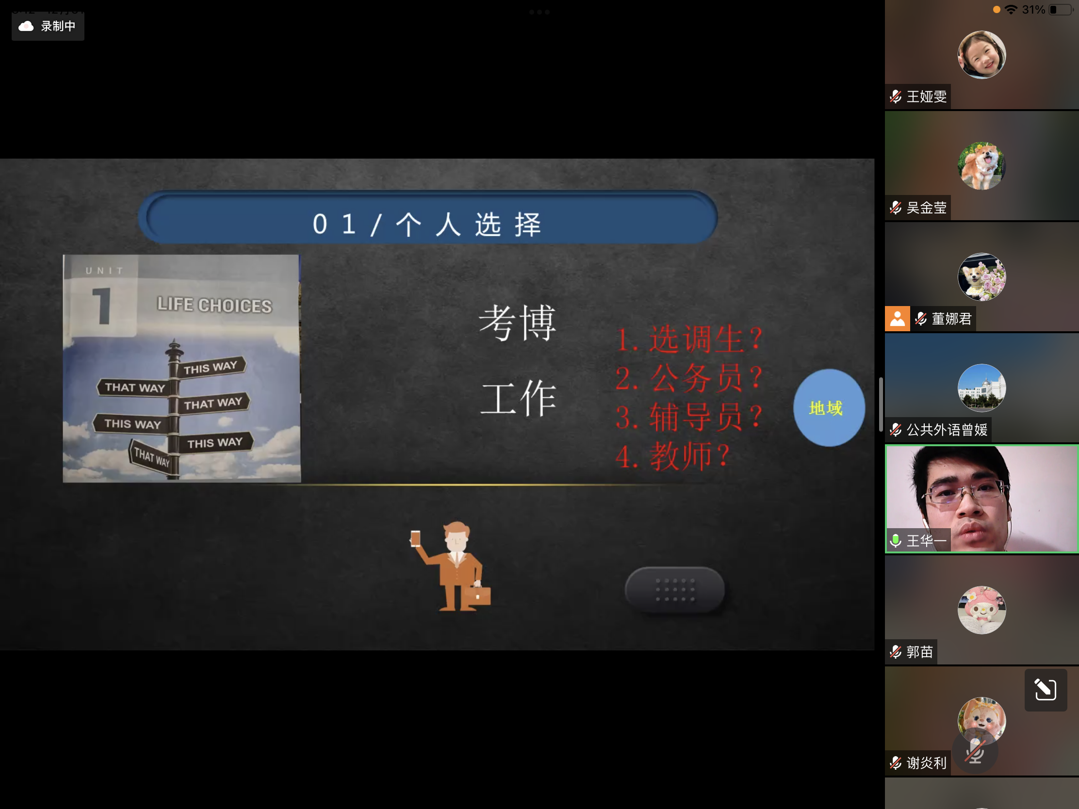为发挥优秀毕业生模范带头作用,引导学生明确就业目标、制定就业计划规划,2022年12月31日晚6点,公共外语教育学院线上举办了北京市教师编分享会。此次分享会由辅导员曾媛主持,特邀请2019级优秀院友、现就职于北京工业大学附属中学王华一教师主讲,公共外语教育学院百余名研究生参会。