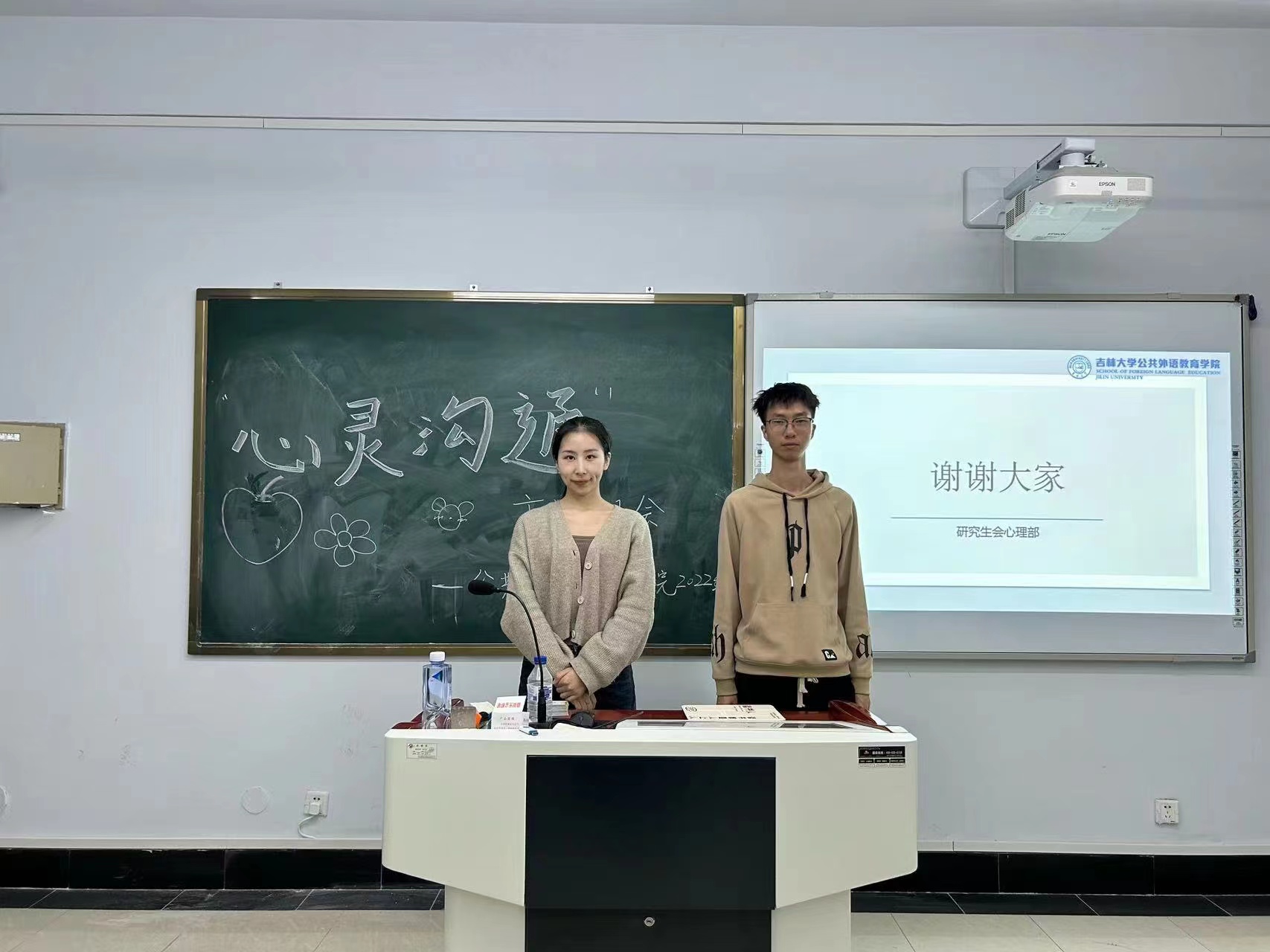 为促进同学间的情感沟通和友爱互助,号召广大学生关注自我及他人的心理健康,公共外语教育学院于2023412日晚在敬信楼D403教室成功举办了“心灵沟通”主题班会,该活动由学生心理健康指导中心和学院心理辅导员指导,心理部成员佟傲主持,2022级研究生参与。活动内容丰富有趣,形式多样,有效缓解了同学们在学习和生活中产生消极情绪心理压力。