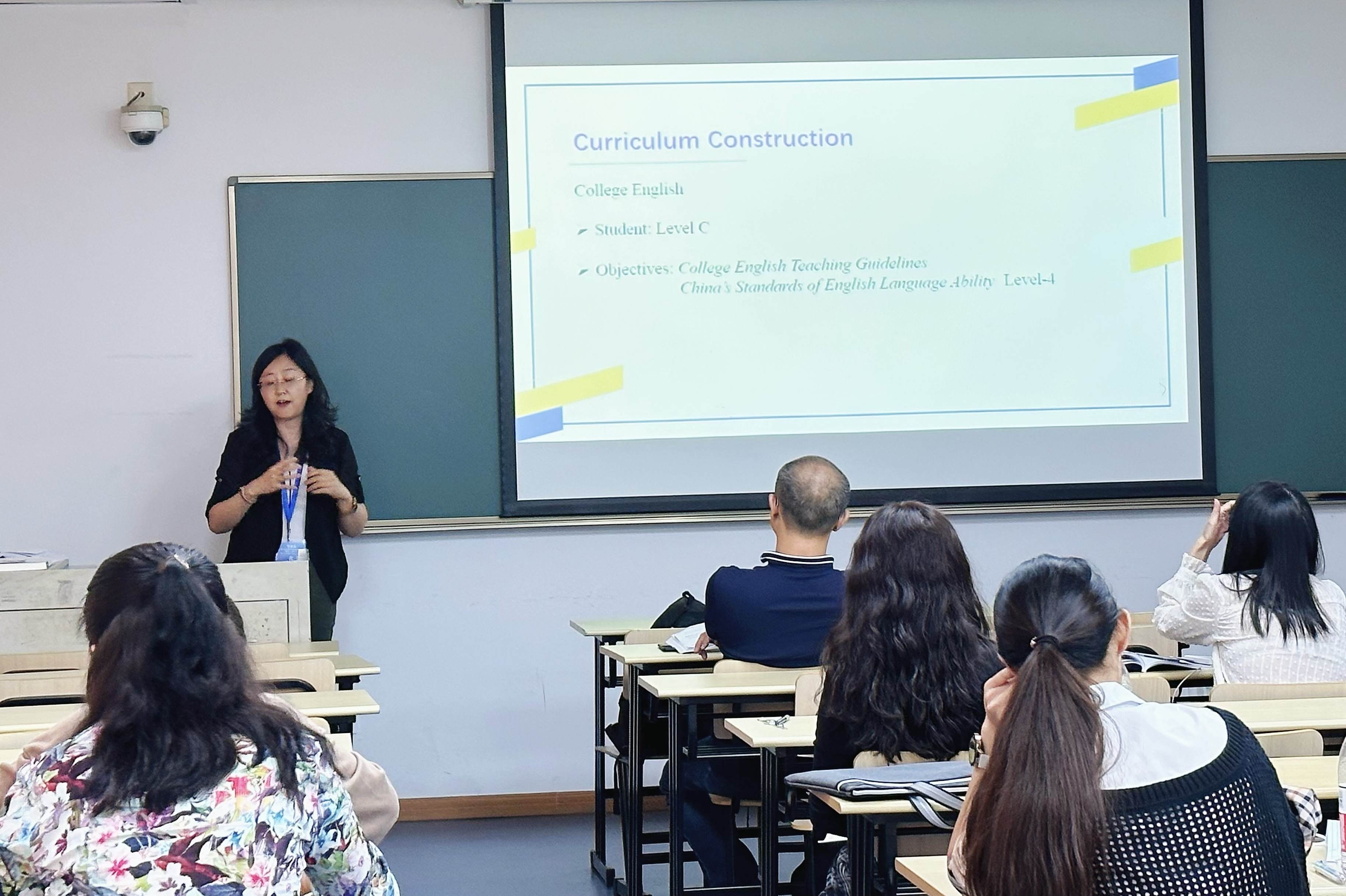战菊教授主持了北京师范大学宋萑教授的主旨报告 “面向未来的循证教师教育”,并做了精彩点评。初彤和张凤娟两位老师宣读了论文“Identity construction and power dynamics in the co-teaching discourse of native and non-native English-speaking teachers”,分享了中外籍教师在合作教学过程中如何动态建构多元身份,推动专业发展的研究成果。许春燕和战菊两位老师以课程建设——促进大学外语教师发展的有效途径为题,介绍了我校大学英语课程建设团队的教学实践,特别分享了大学英语混合式课程建设在促进教师发展、提升教师教学能力和技术运用能力等方面的成效。