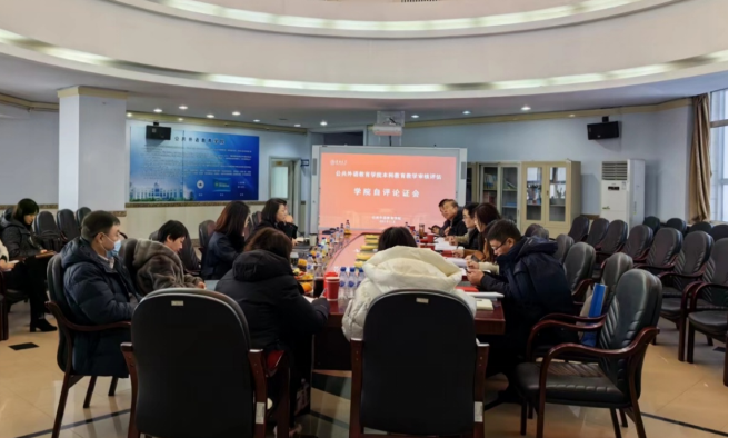 2023年12月14日上午,人文学部专家组到公共外语教育学院召开本科教育教学审核评估第一轮学院自评线下考察会。专家组组长蔡大伟,副组长郝陶群,专家孙明丽、孙一、王延彬,OBE指导专家杨永健及专家组秘书张强莅临我院指导;公共外语教育学院领导班子全体成员、教学委员会主任、校级督学、教师代表及教学办全体成员参加会议。