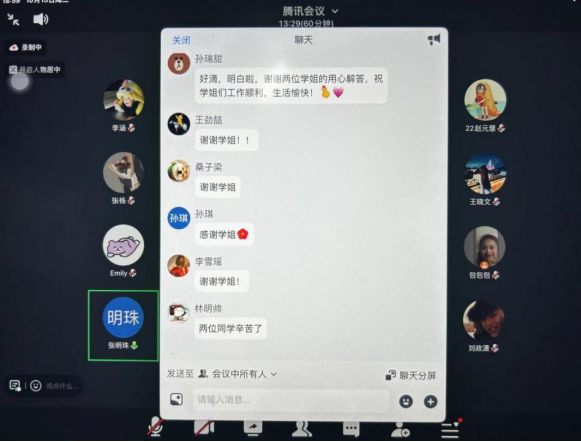 分享了她在求职过程中的心得体会:前期要目标明确、中期要积累经验、后期要保持积极心态。她强调,在求职过程中要坚定自我,关注自己最在意那一部分,同时要积极面对面试中的挑战,不断积累经验,调整心态。张杨还介绍了自己目前的工作情况,包括工作性质、薪资待遇、工作内容等,为同学们提供了宝贵的参考信息。