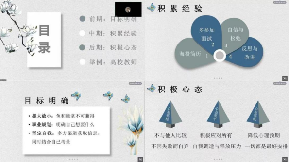 宿晓欣以自身经历为例,分享了她在求职过程中的择业原则、踩坑经历以及经验和建议。她指出,择业要根据自己的性格、兴趣和家庭因素进行综合考虑,同时要注重提升英语专业能力和综合能力,合理安排论文和考试时间,保持平稳心态。宿晓欣还强调了面试过程中的细节问题,如口语表达、眼神交流等,以及如何通过不断反思和改进来提高自己的求职竞争力。