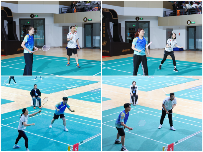 比赛当日,赛场气氛热烈非凡,各学院参赛队伍齐聚一堂,摩拳擦掌、跃跃欲试。学院参赛师生们满怀信心,眼神中透着对羽毛球的热爱与对竞技的热忱,热身时的认真专注,已然显露出不凡的斗志。比赛中,选手们展现了出色的技术和默契的配合,全力以赴每球必争。